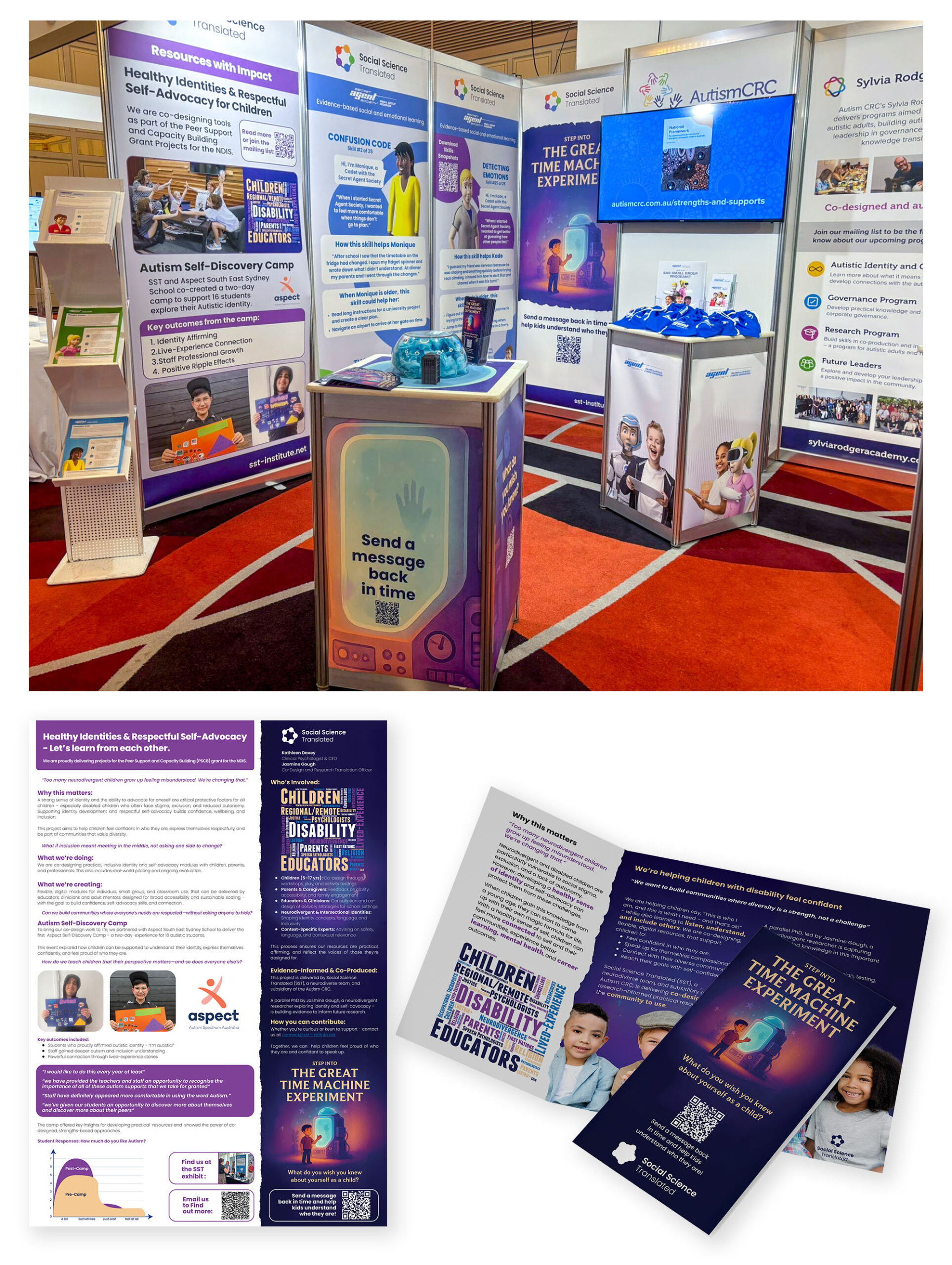 The Great Time Machine is a side project with new branding and colours, some of the print work is seen here in the APAC booth along side matching Secret Agent Society content. Other work under this brand are academic posters, brochures and digital.